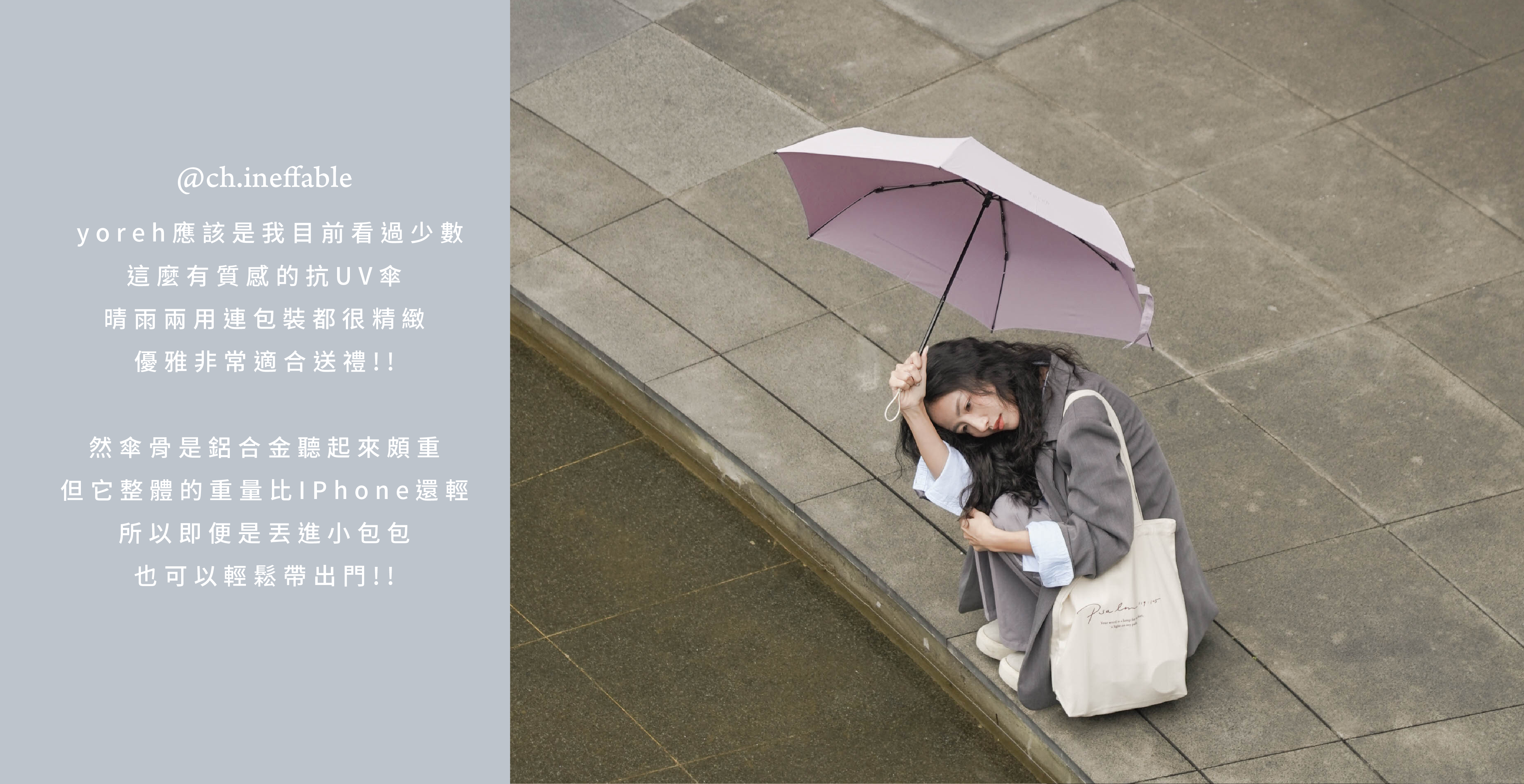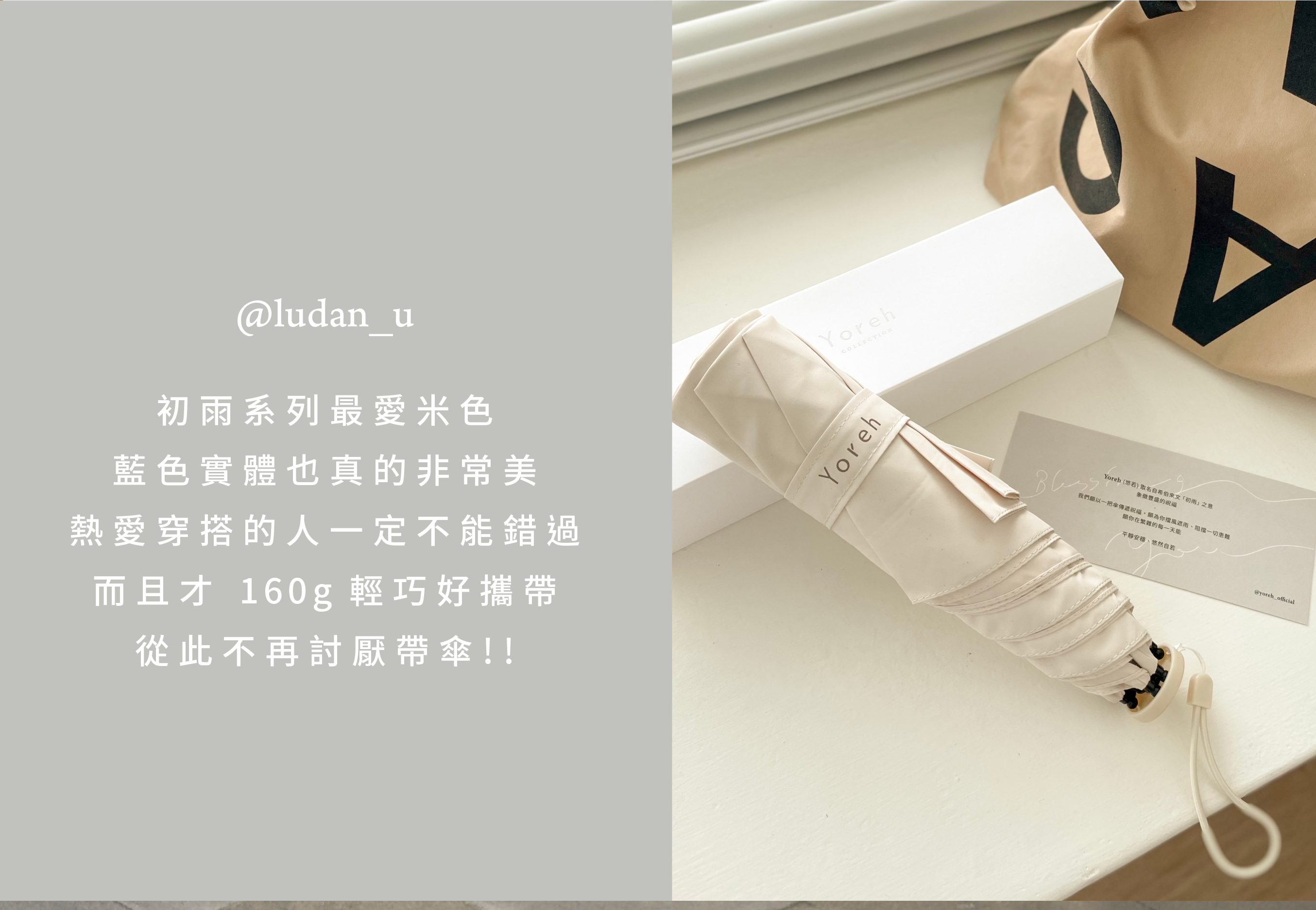 Yoreh簡約三折晴雨傘僅152g,放在包包不佔體積跟重量,2.5級奈米防潑水,一甩瞬乾不濕手,也沒有悶悶臭臭的味道