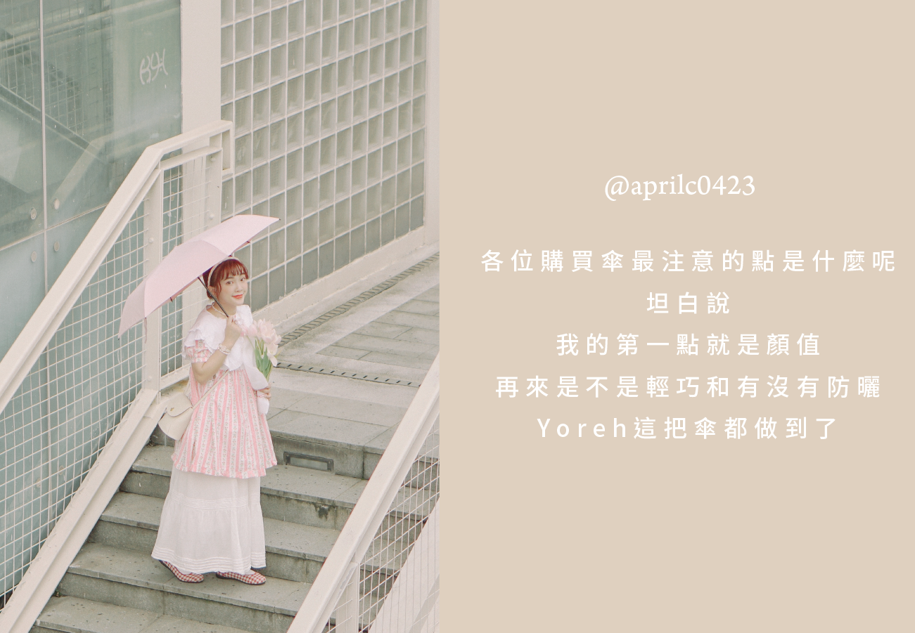 Yoreh摺疊傘外觀簡約,沒有過多裝飾和圖騰,也可根據不同心情、穿搭來搭配你今天的傘。
