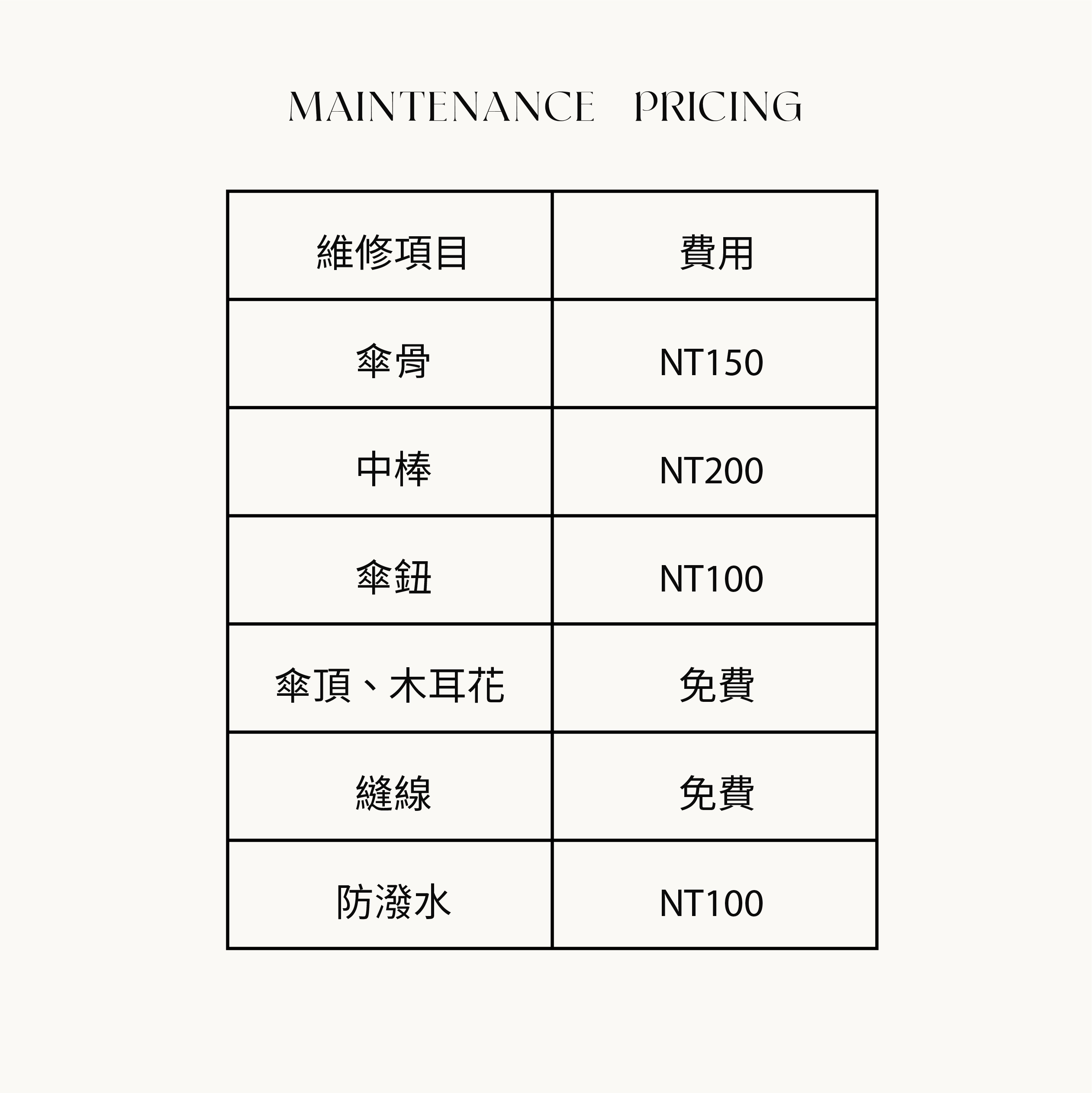聯絡資訊紙條(收件人、電話、地址)※維修完才能將傘寄回