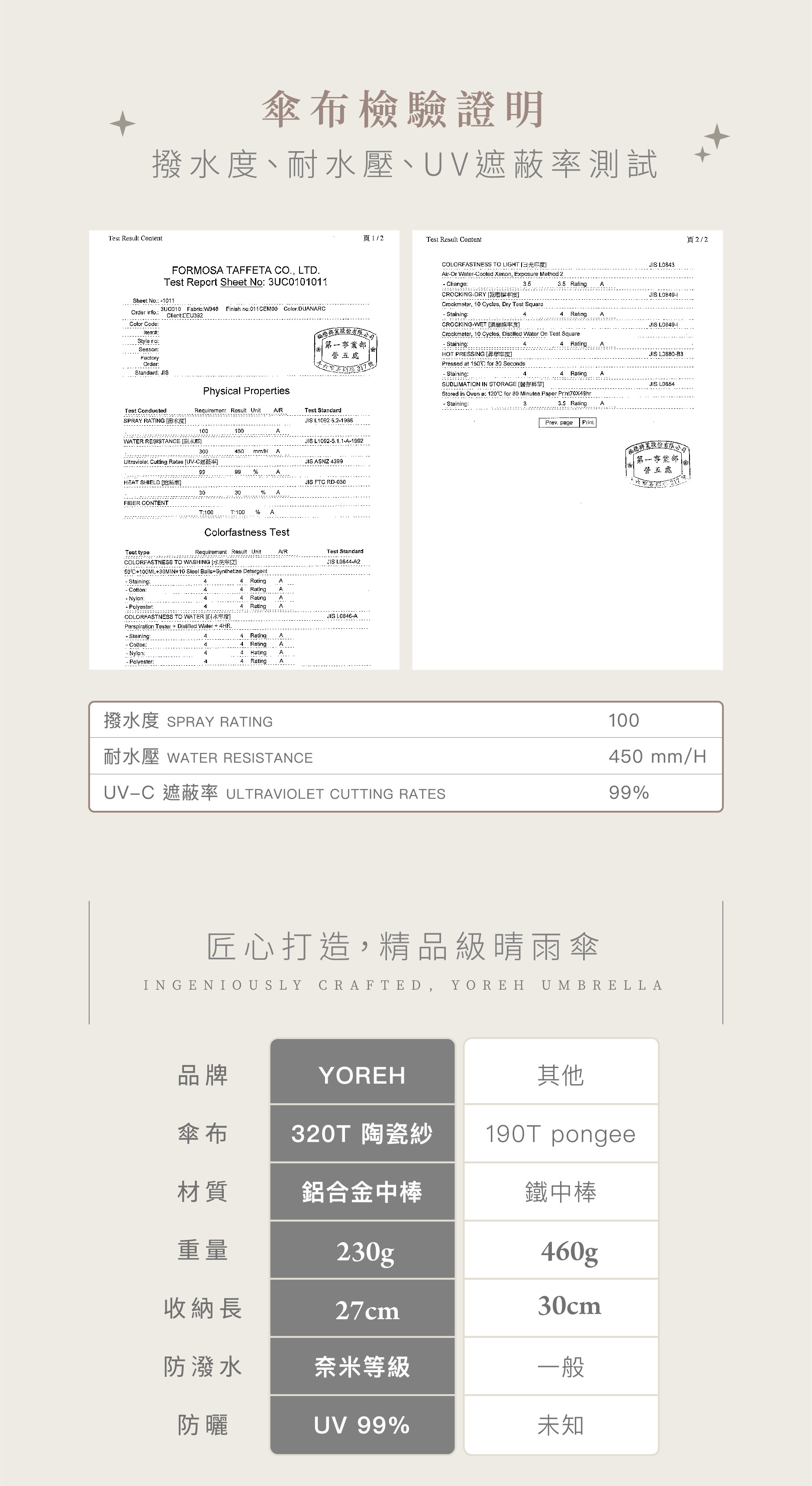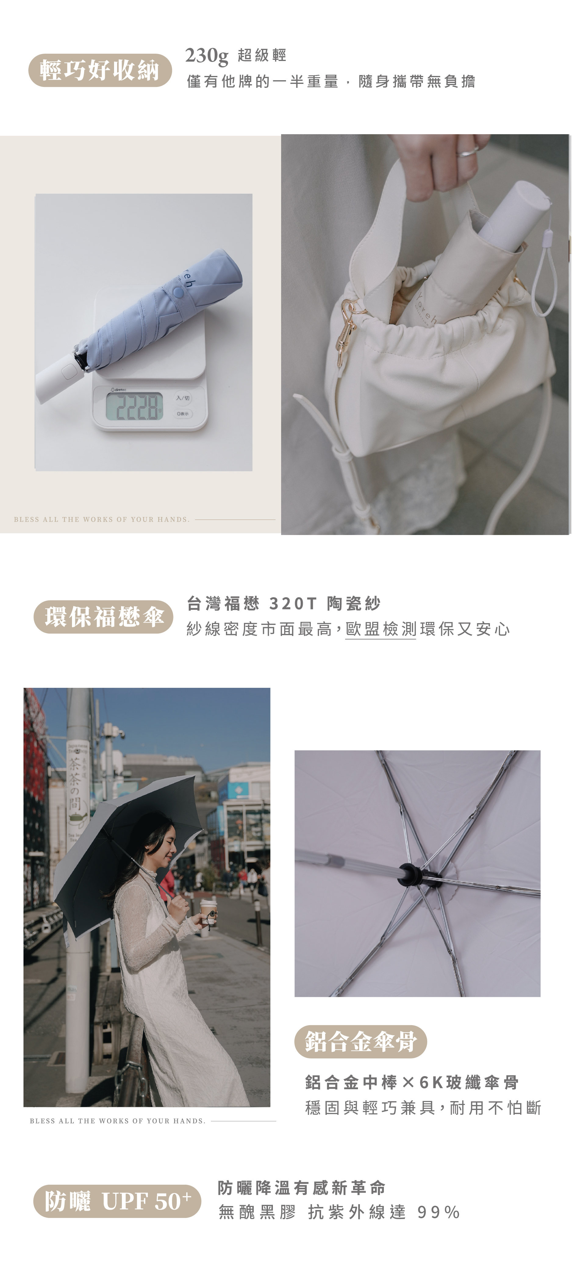 傘布沿用320T高密度陶瓷紗,觸感細緻