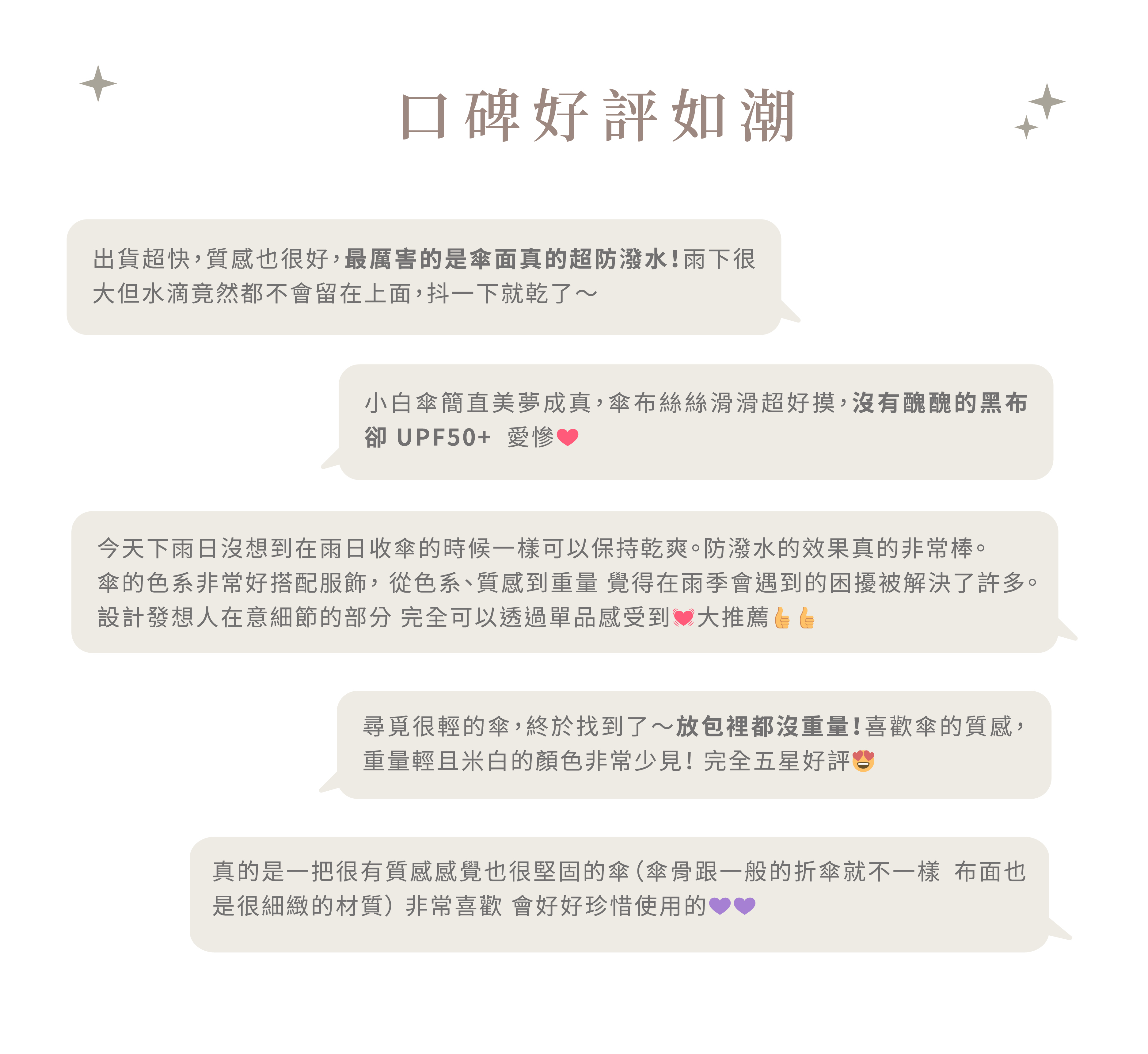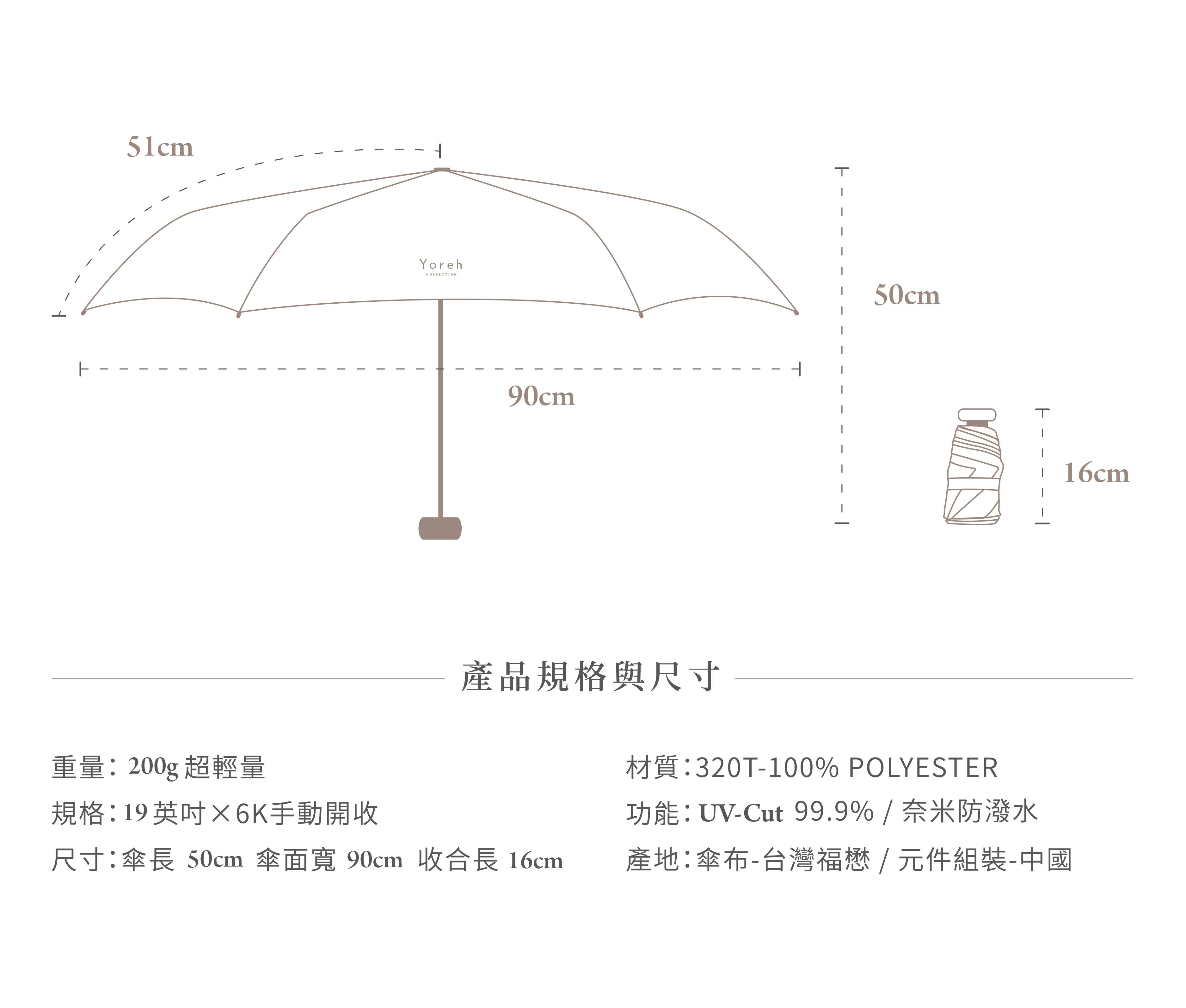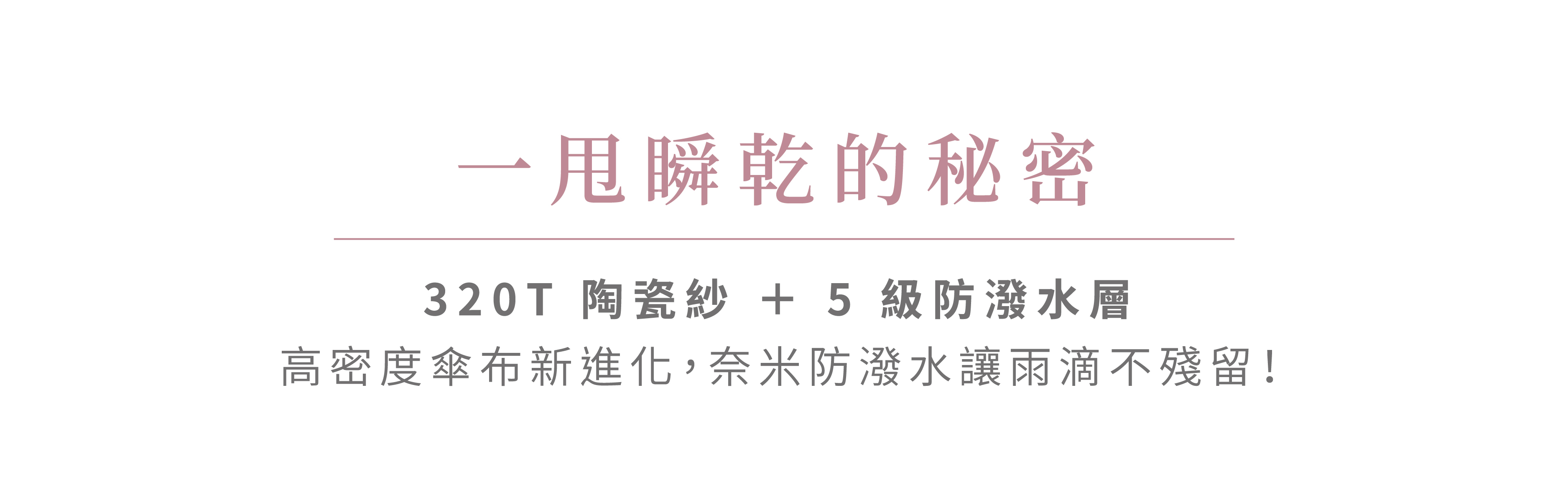 • 320T陶瓷紗傘布,觸感細緻柔軟