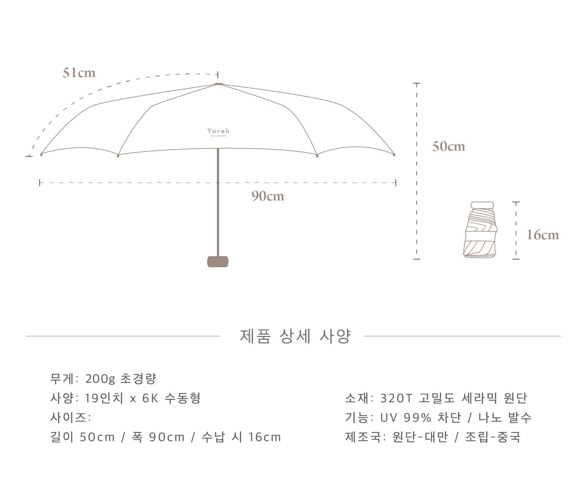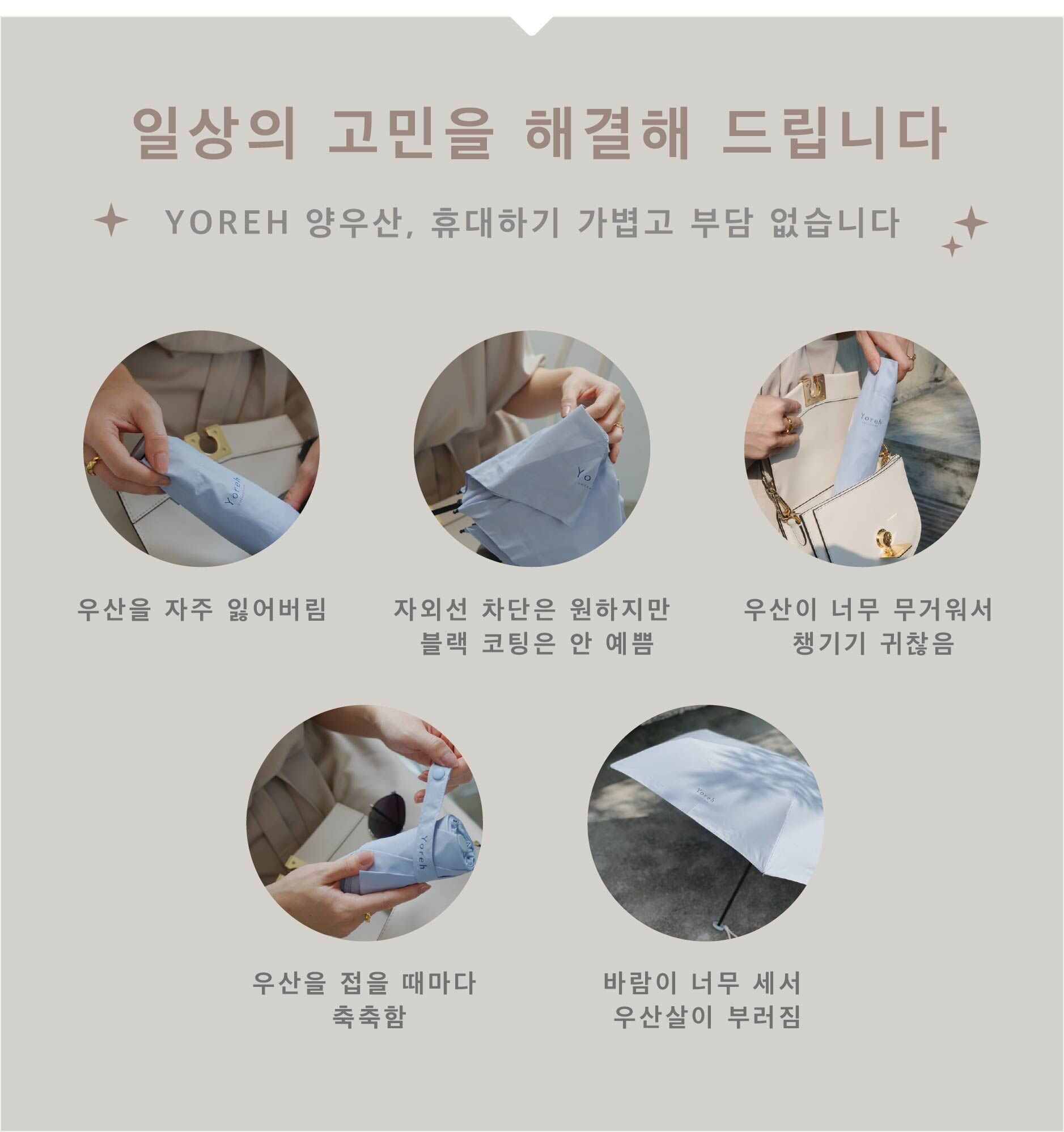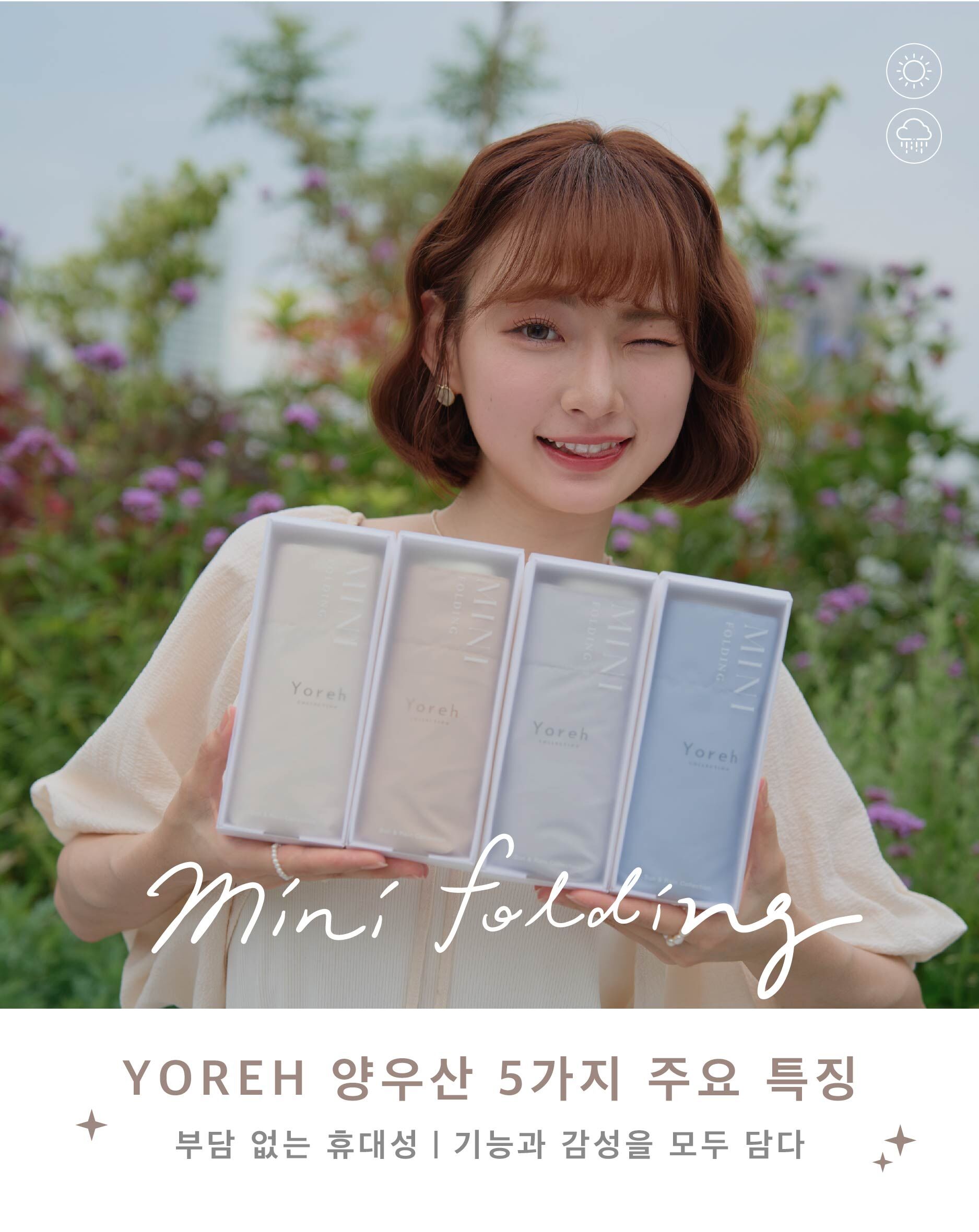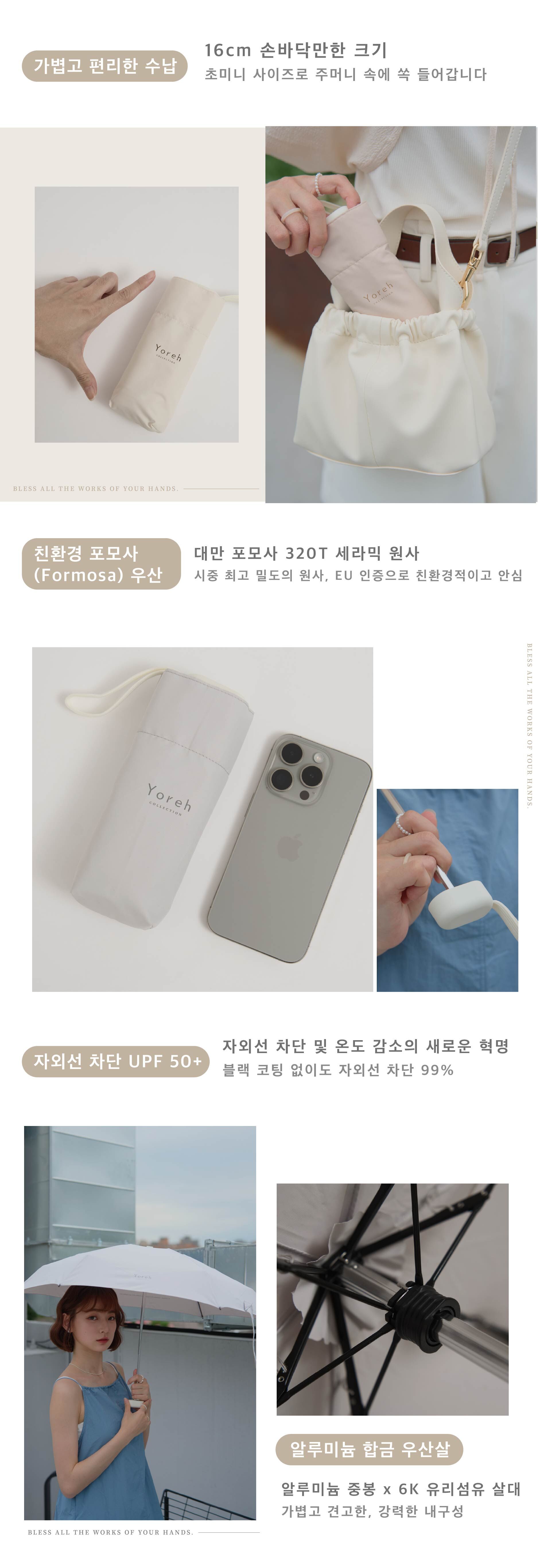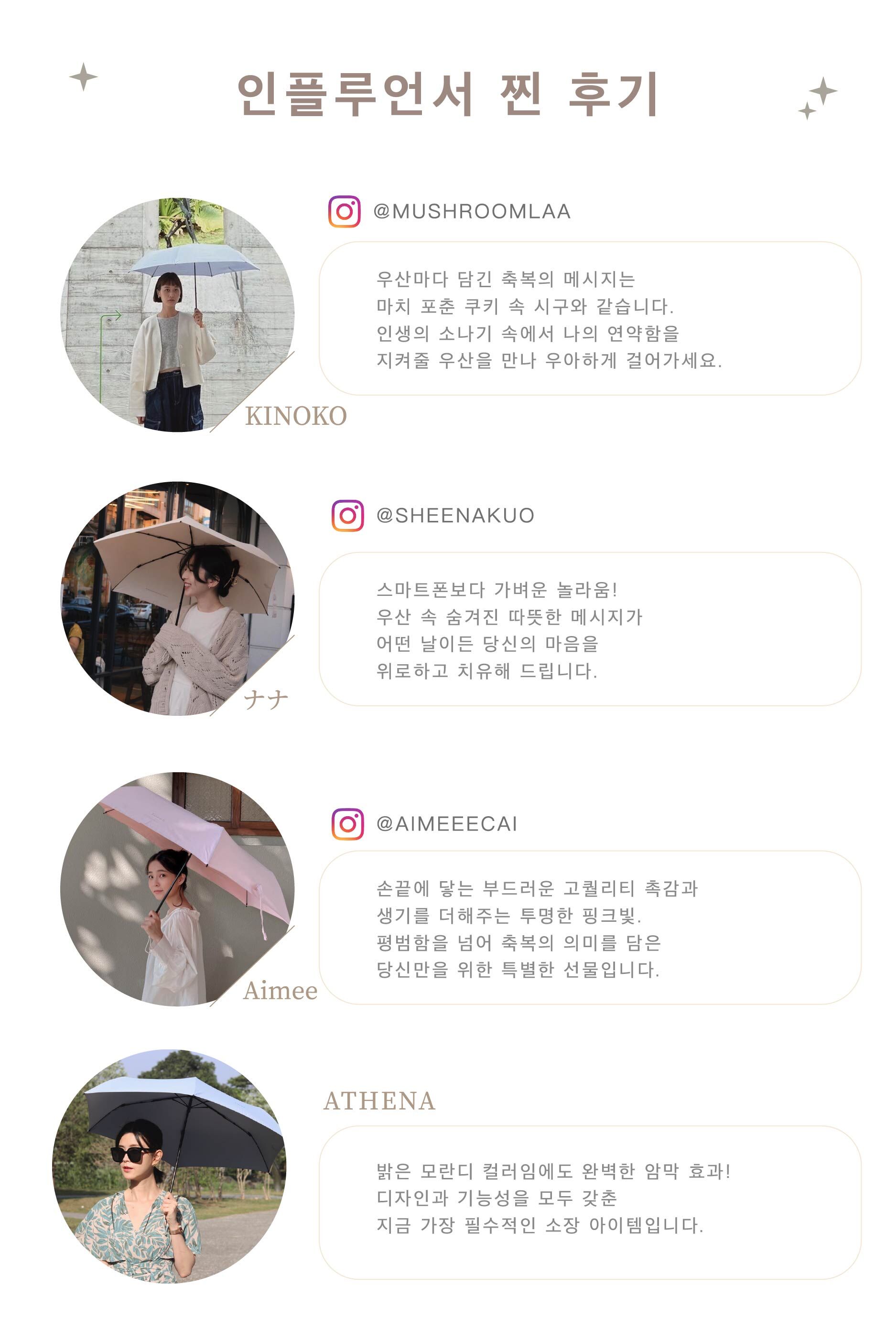 길이가 단 16cm에 불과해 어떤 미니백에도 쏙 들어가며, 커다란 우산의 번거로움과 무게감에서 해방시켜 드립니다.
