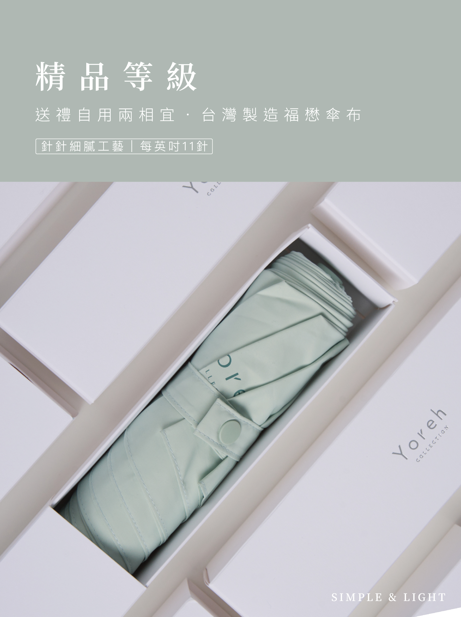• 320T陶瓷紗傘布,觸感細緻柔軟