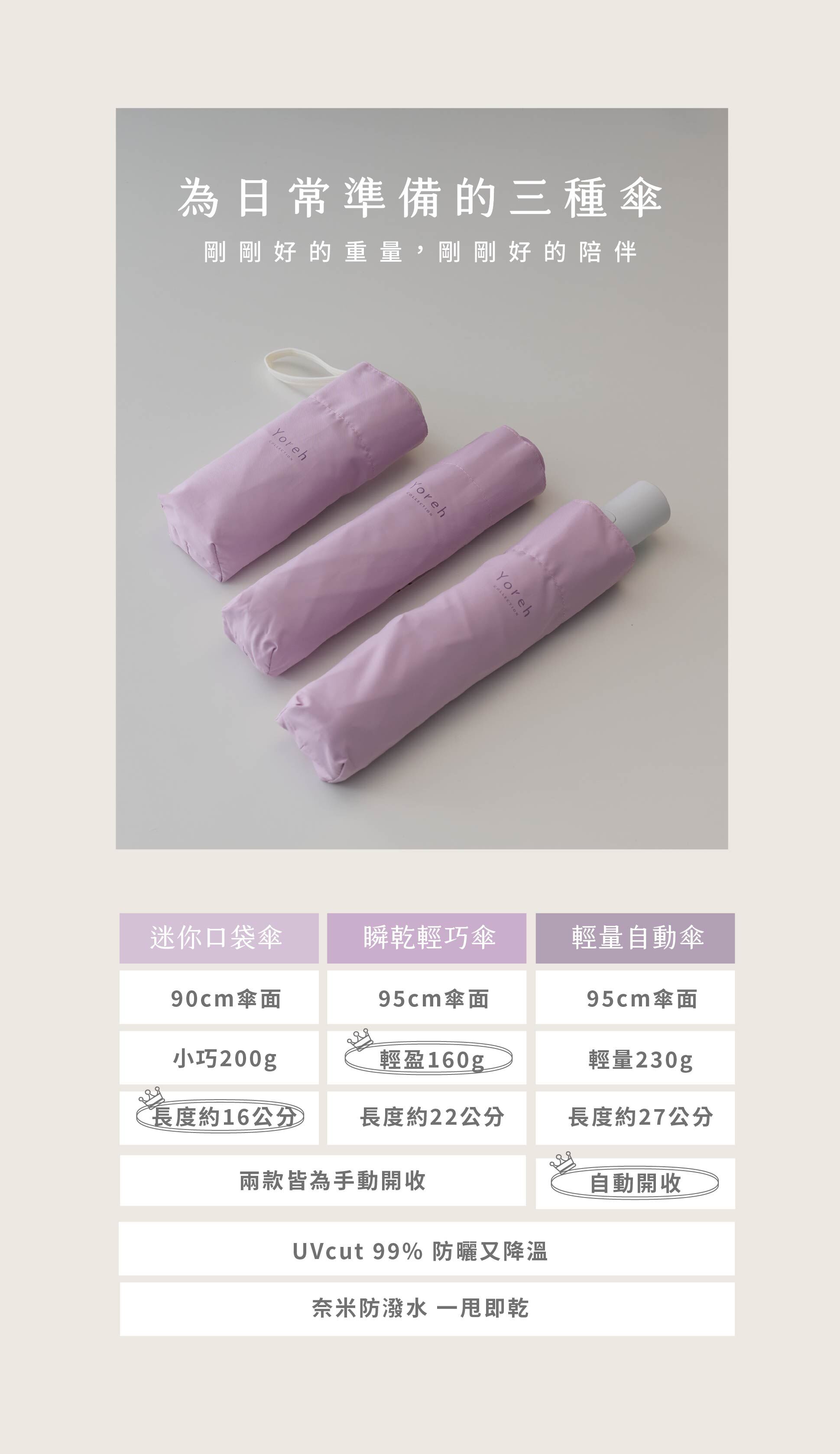 Yoreh 迷你口袋傘 mini 驚喜推出新色 Rejoice 喜悅紫。