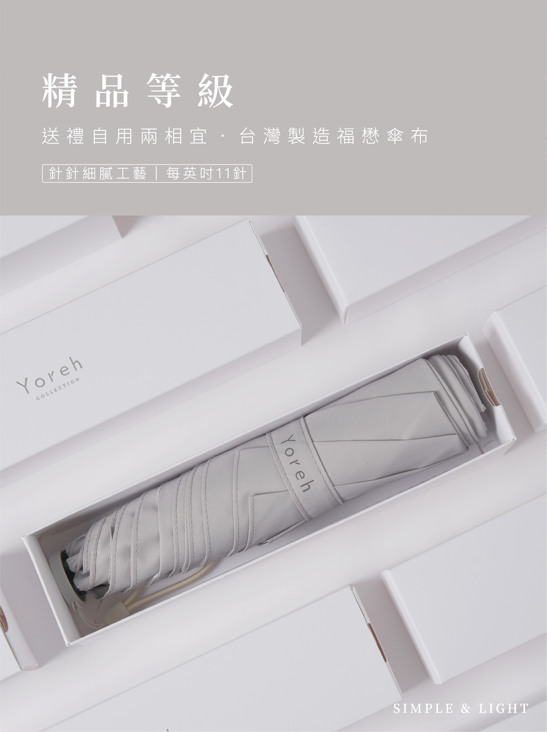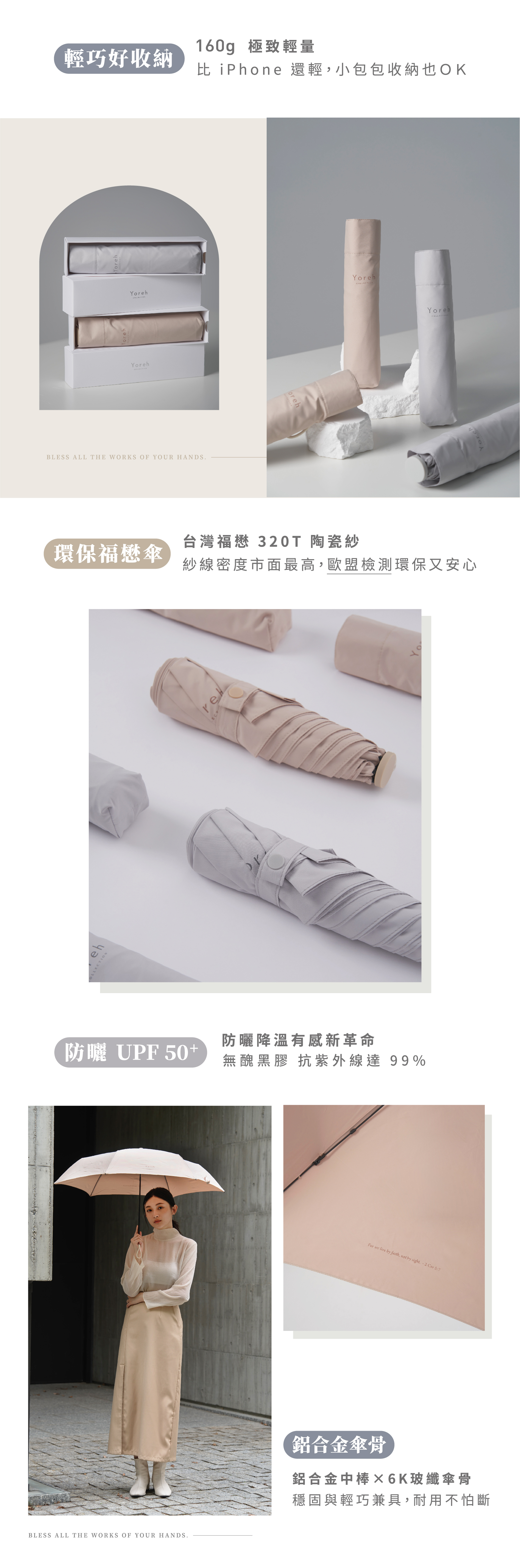 • 320T陶瓷紗傘布,觸感細緻柔軟