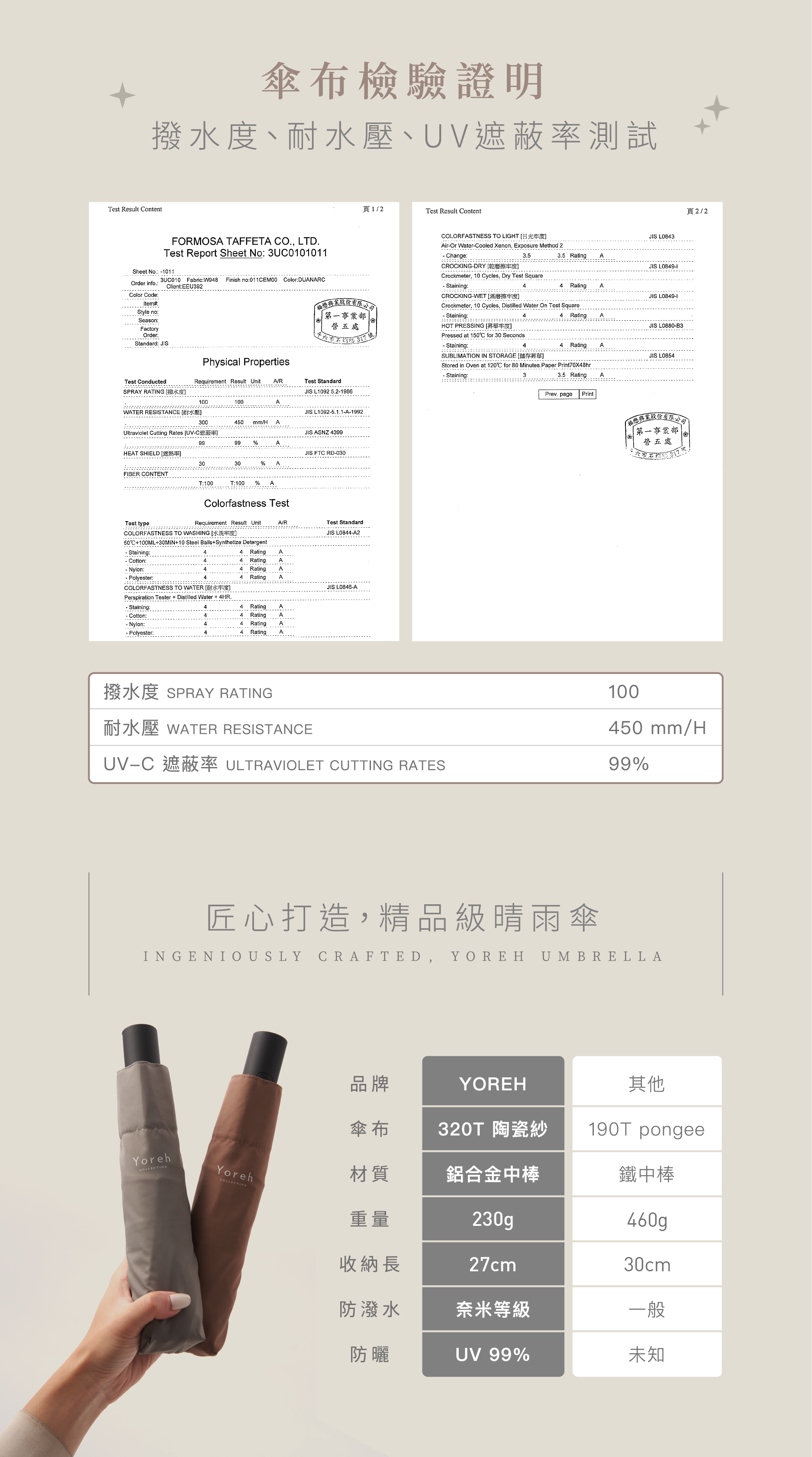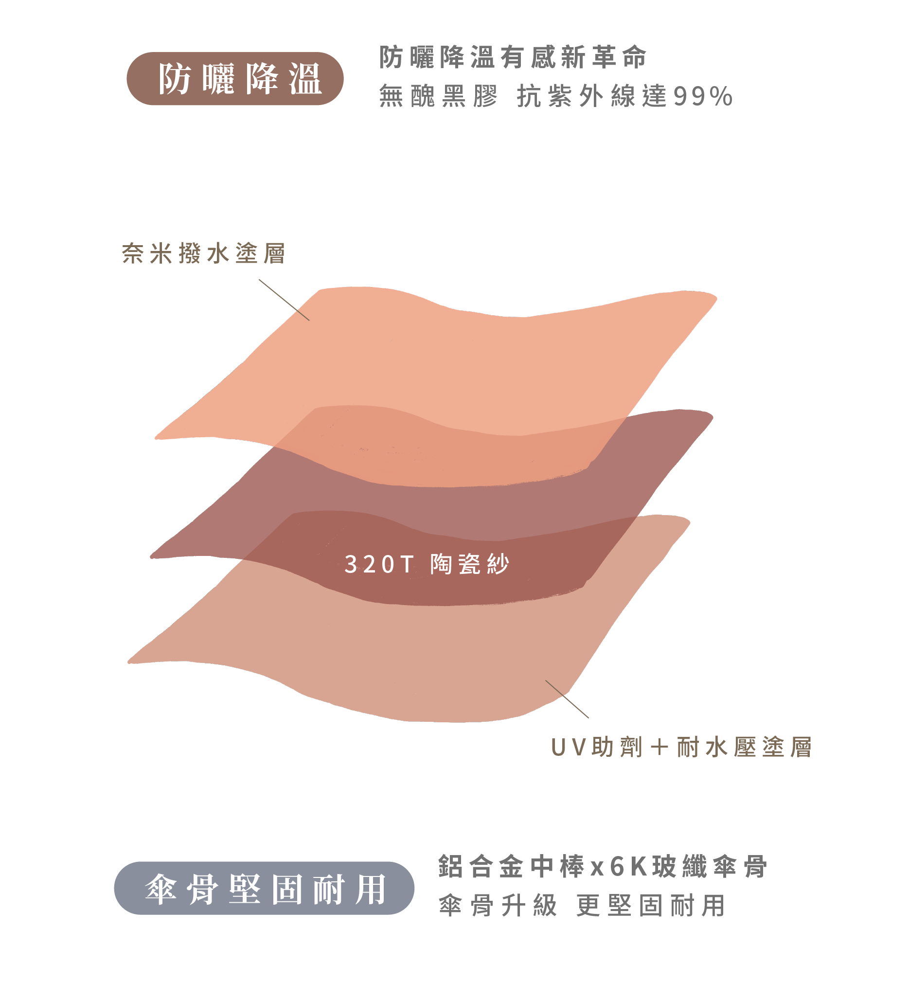 傘布沿用320T高密度陶瓷紗,觸感細緻