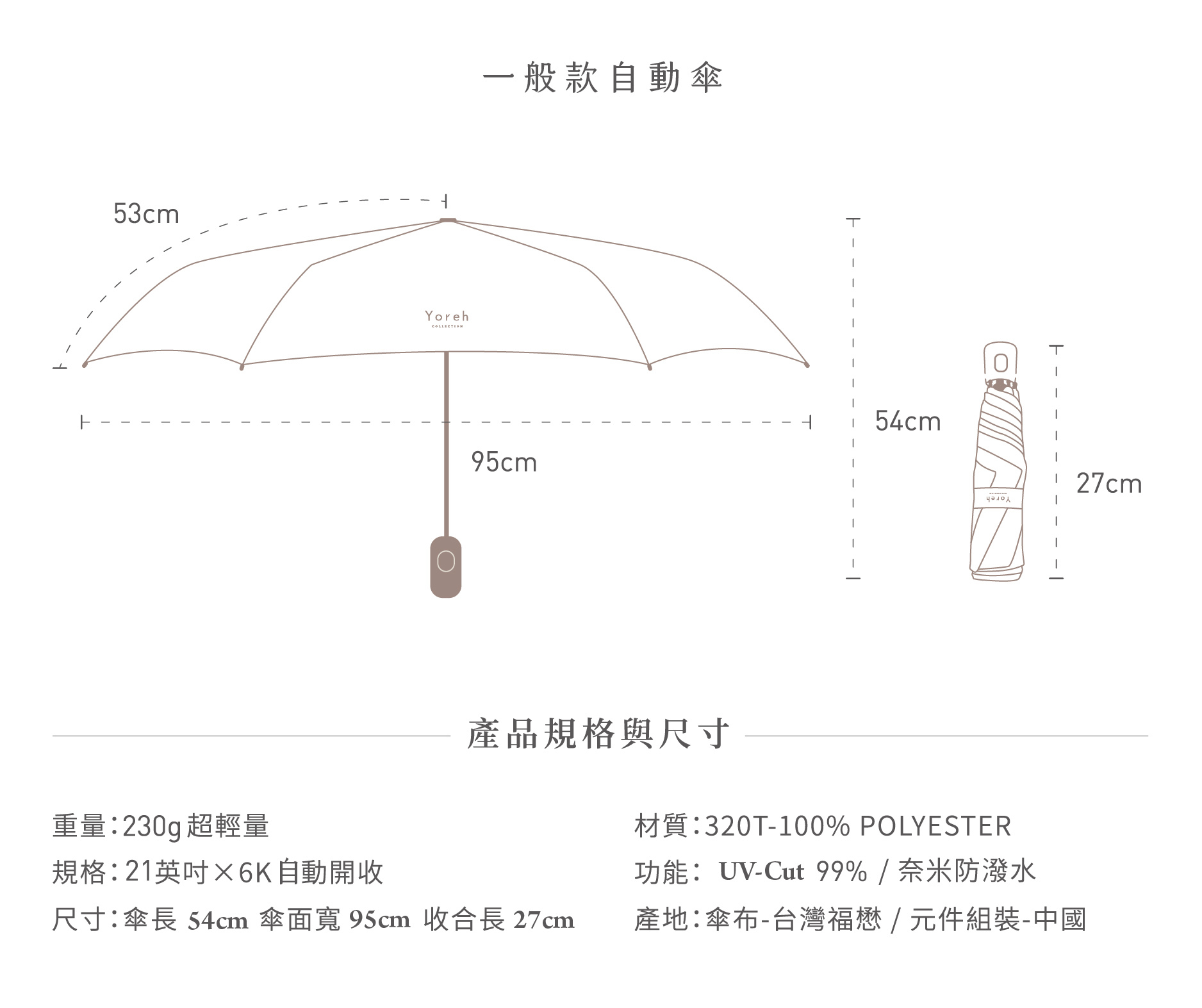 【一般款】傘面寬度:106cm 遮蔽直徑:90cm 適合1人