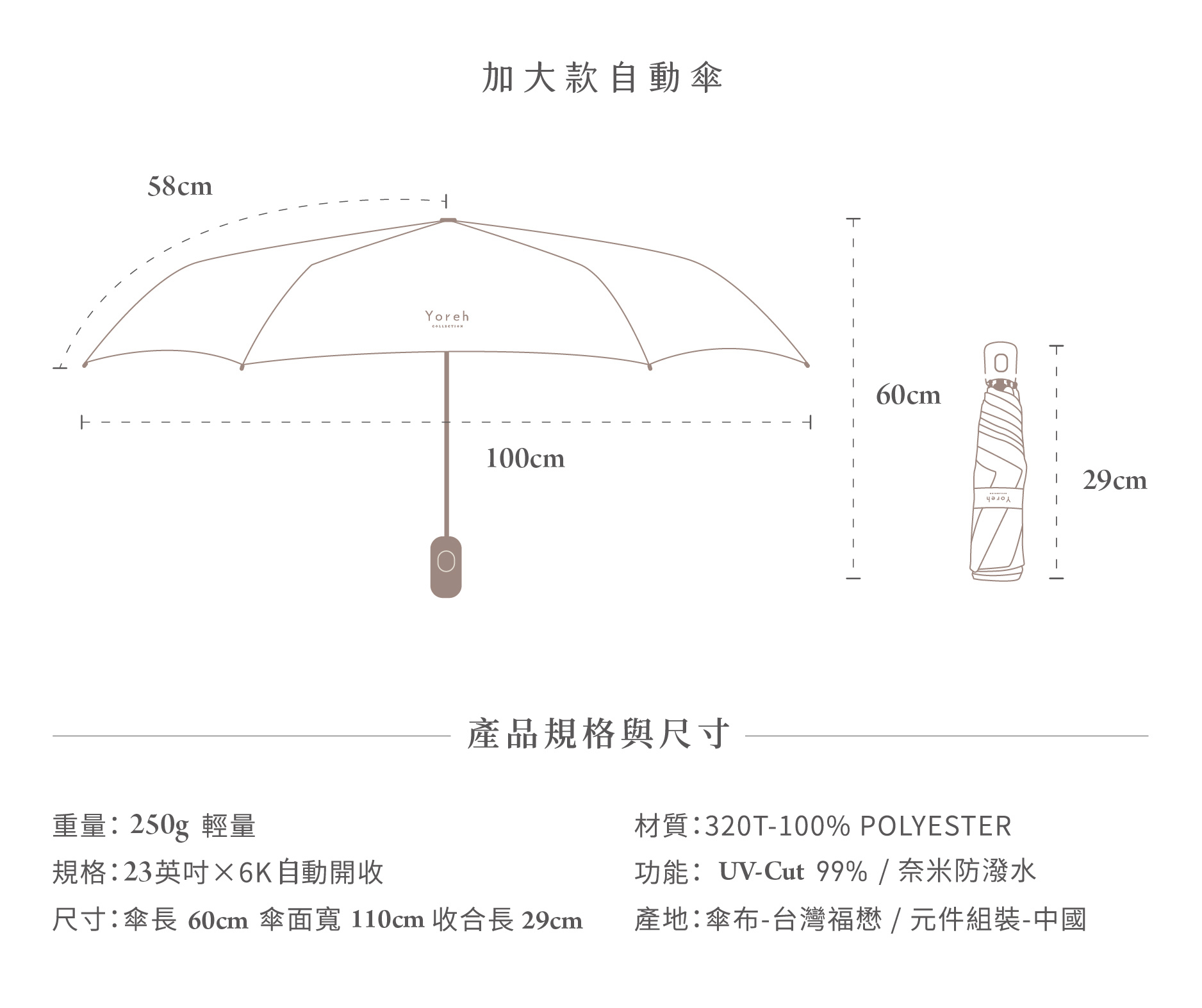 【加大款】傘面寬度:116cm 遮蔽直徑:100cm 適合1-2人