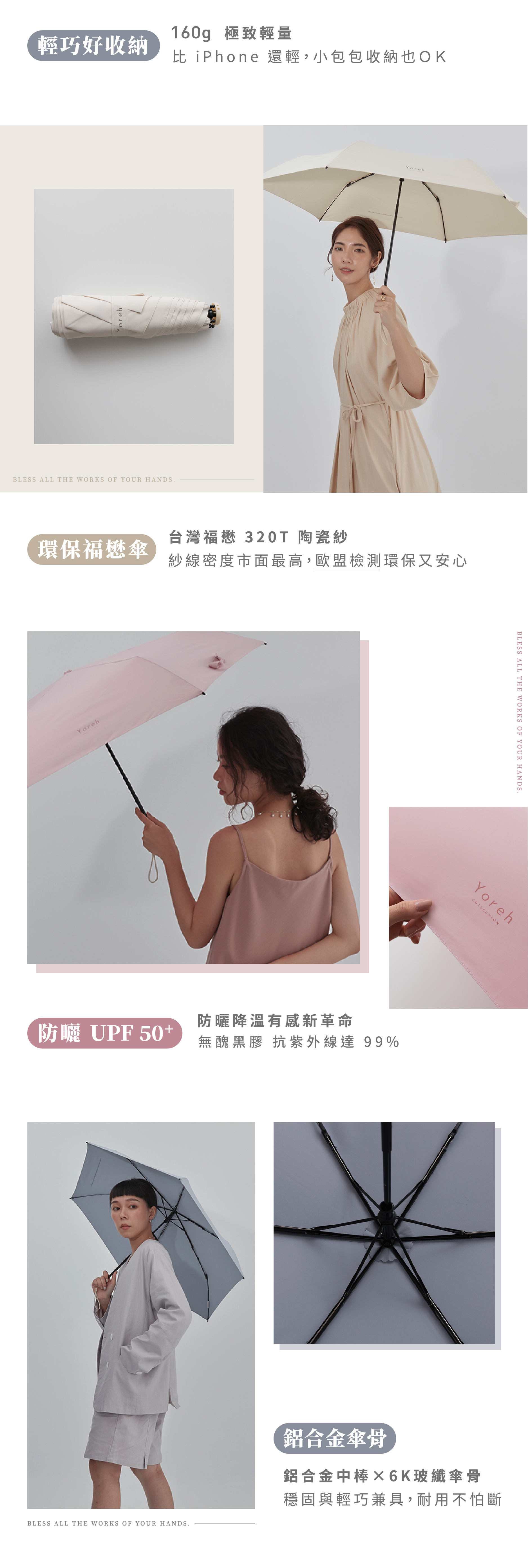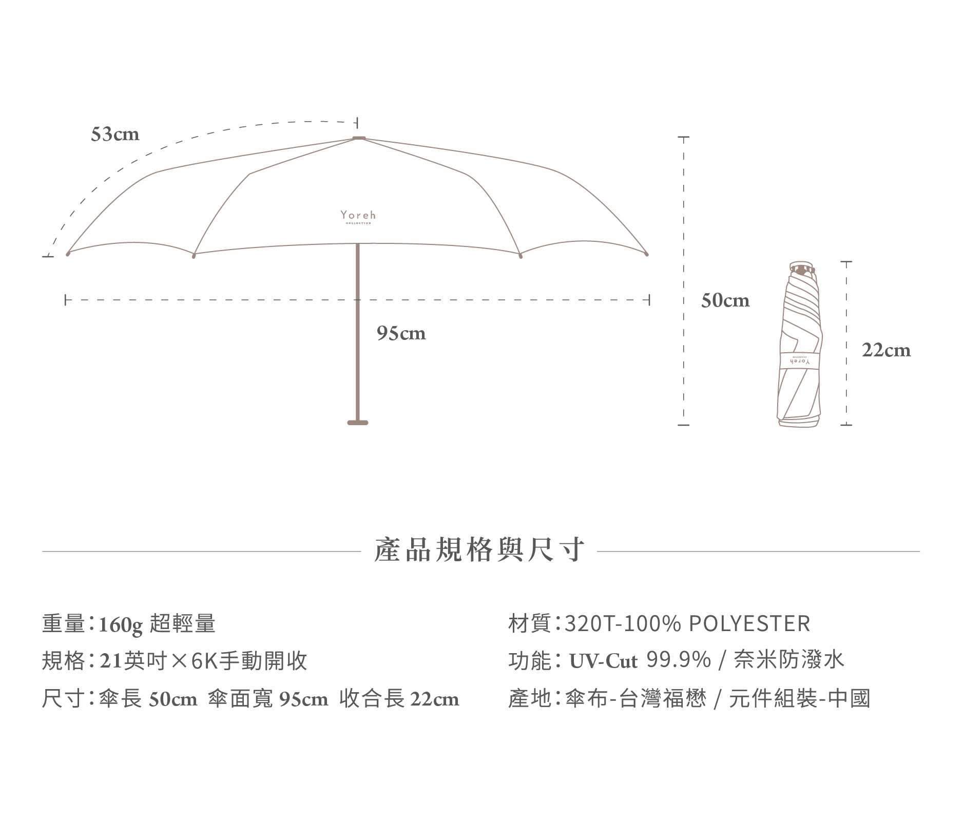 • 320T陶瓷紗傘布,觸感細緻柔軟