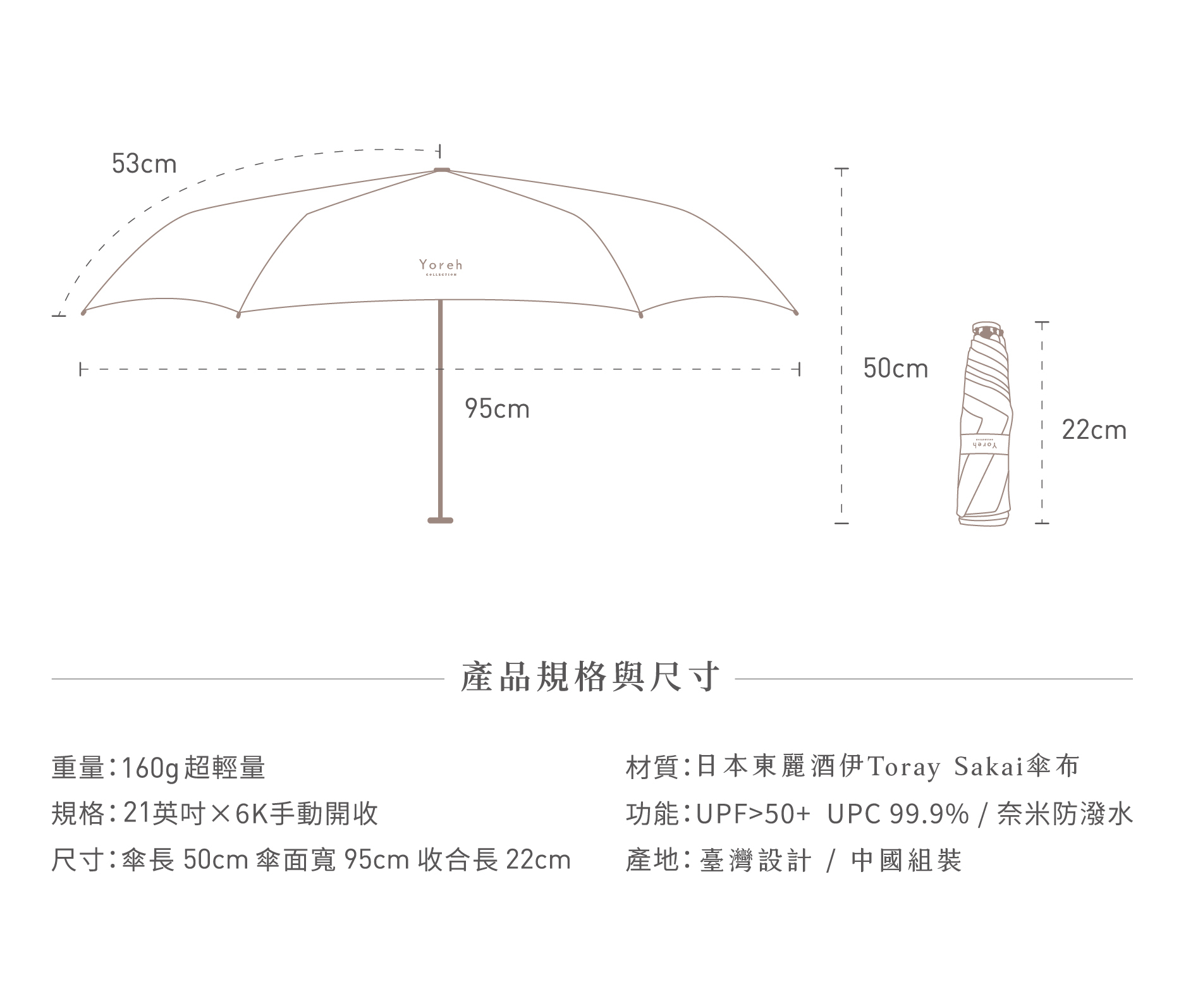 • 傘面輕薄、速乾防撥水、比iphone還輕